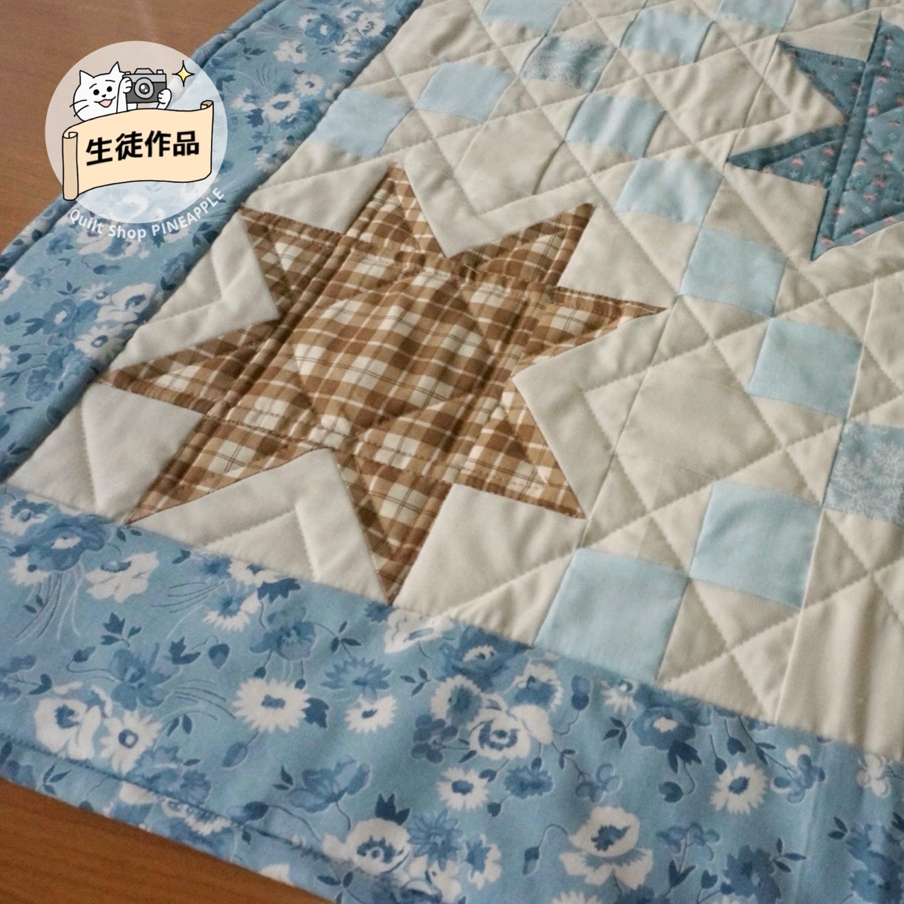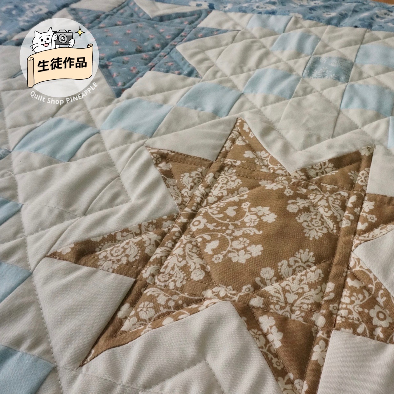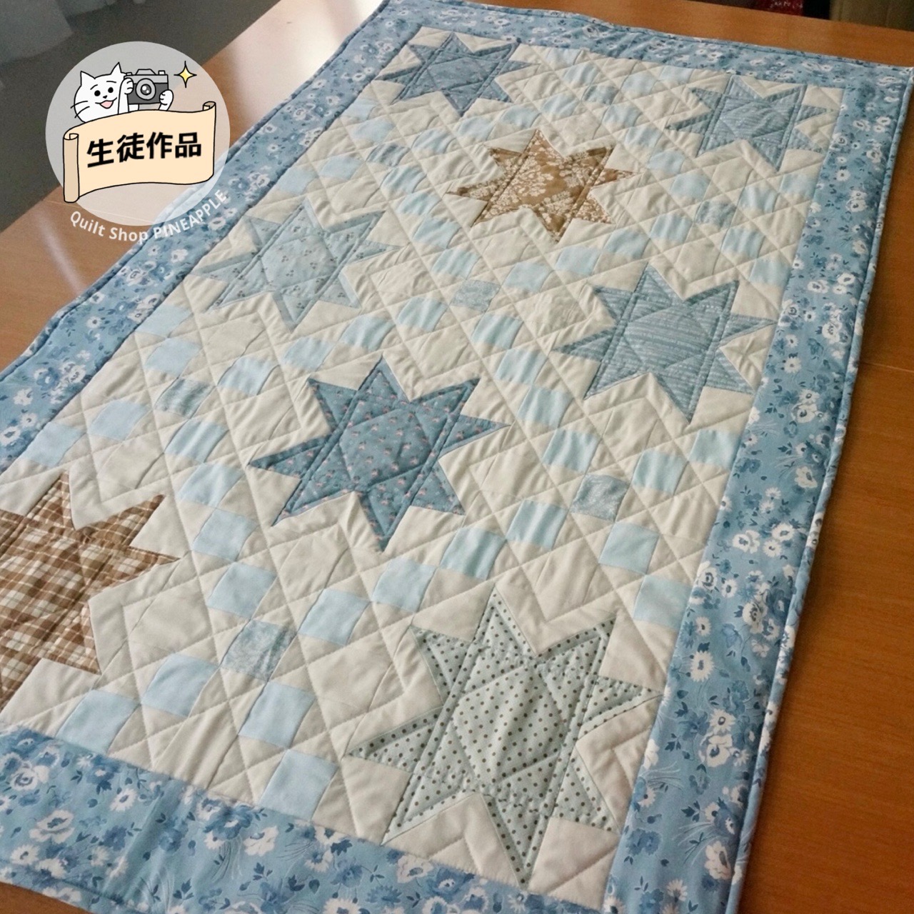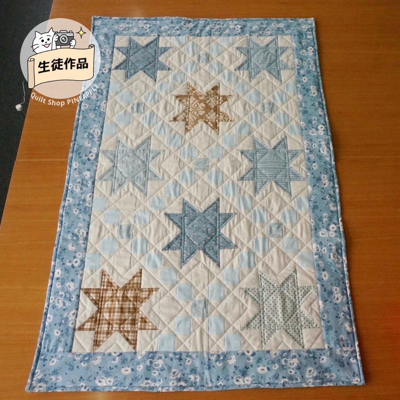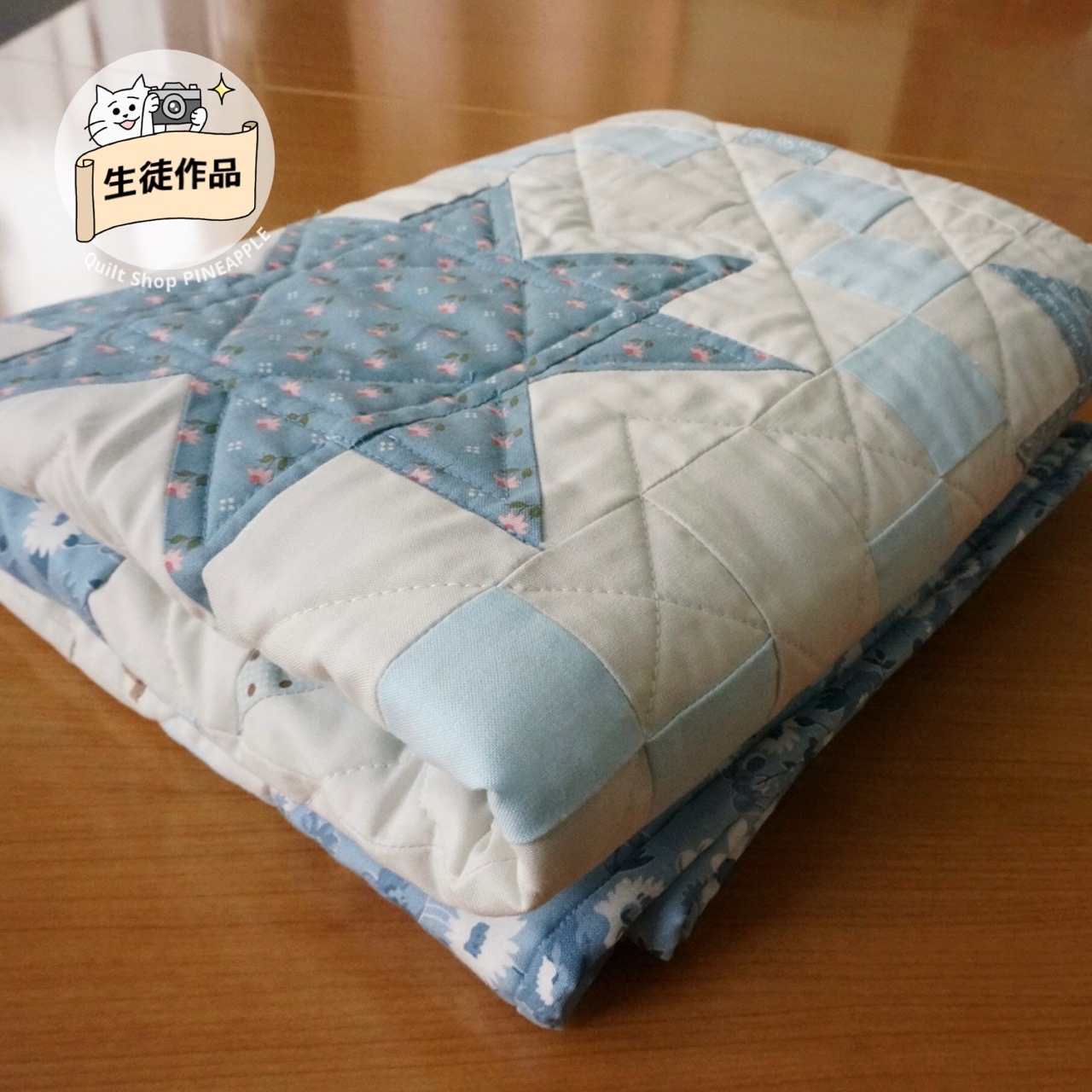 スターとお花のベビーキルトのお花のパターンを変えて、アイリッシュチェーンにしました。生徒作品です。